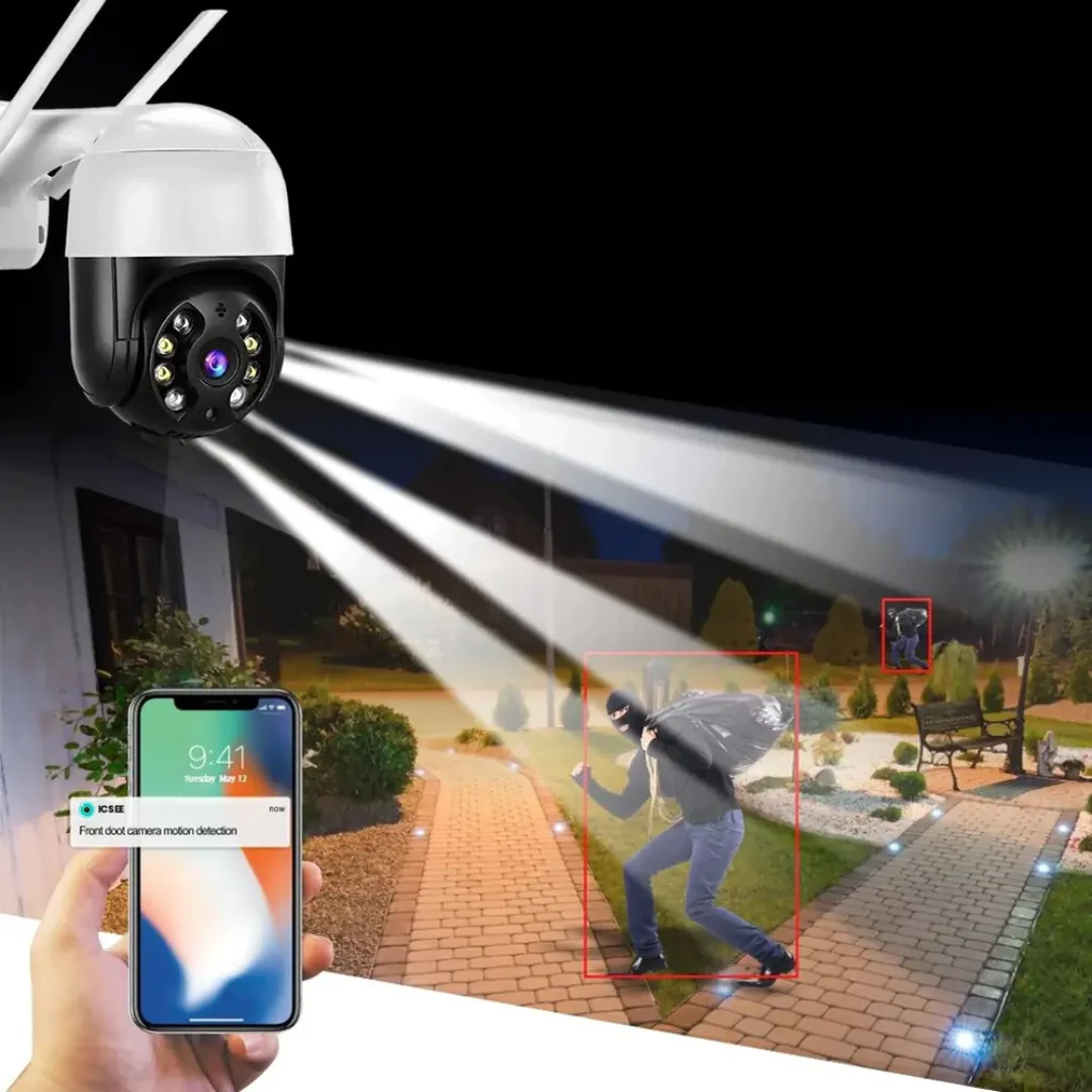 Ova kamera je dizajnirana za vanjsku i unutarnju upotrebu, s IP66 zaštitom koja je otporna na različite vremenske uvjete. Spremanje podataka na mikro SD memorijsku karticu do 128GB i Cloud osigurava da nikada ne propustite nijedan trenutak. Kamera je izrađena od vrlo izdržljive ABS plastike koja može izdržati ekstremne uvjete.