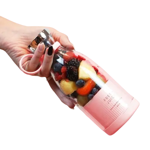 Prijenosni mini blender je savršeno rješenje za vas. Bilo da ste na poslu, u šetnji, u parku ili na odmoru, ovaj blender omogućuje vam da brzo izblendate voće s dodacima i pripremite omiljeni sok, shake ili smuti. Jednim punjenjem baterije možete napraviti od 8 do 10 napitaka