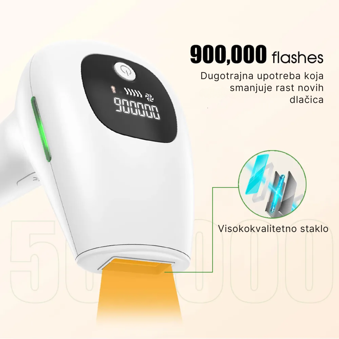 Ovaj IPL uređaj koristi najnoviju tehnologiju pulsirajuće svjetlosti za trajno zaustavljanje rasta dlačica, direktno iz korijena. Zahvaljujući ugrađenoj LED funkciji, koža ostaje hladna i smirena pri svakom tretmanu. Bez brijanja, bez voska i bez crvenila – samo mekana, svilenkasta koža iz udobnosti vašeg doma.