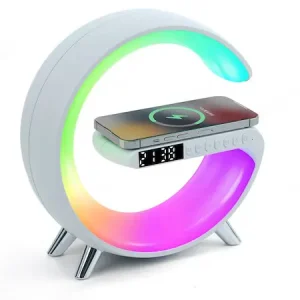 RGB lampa je višenamjensko rješenje, koje se može koristiti za pružanje niza funkcija, kao što su ambijentalno osvjetljenje, bežično punjenje, reprodukcija glazbe i mnoge druge. Ova svjetiljka može se prilagoditi prema željama i potrebama korisnika, kako bi se savršeno prilagodila prostoru i aktivnostima koje se provode. Nije samo izvor ambijentalnog svjetla, već nudi i funkciju bežičnog punjenja od 15W, Bluetooth zvučnik, reprodukciju glazbe, noćno svjetlo, digitalni sat na zaslonu, alarm za simulaciju izlaska sunca i druge funkcije. Ova RGB lampa se može koristiti dok radite, učite, čitate ili spavate