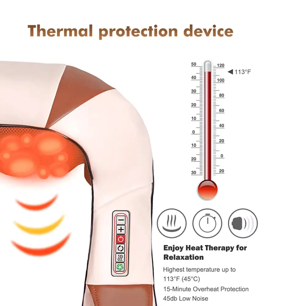1)The neck and shoulder massager comes massage nodes that provide deep kneading shiatsu massage to ease neck and shoulder muscles.
